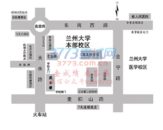 (二)飞机场——兰州大学:乘机场大巴至东方大酒店(校门正对面)过马路即到。