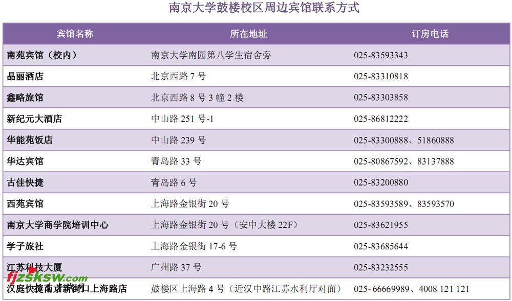 南京大学鼓楼校区周边宾馆地址电话等联系方式