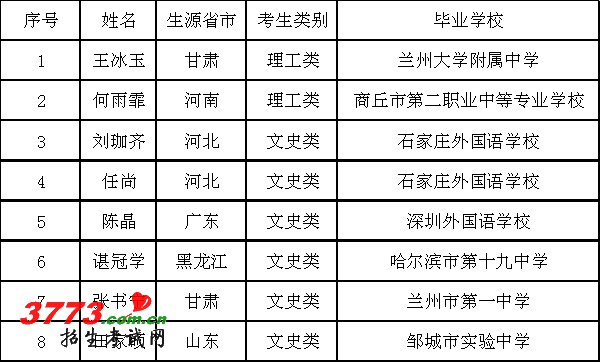 2012年兰州大学自主选拔录取招生入选考生名单公示