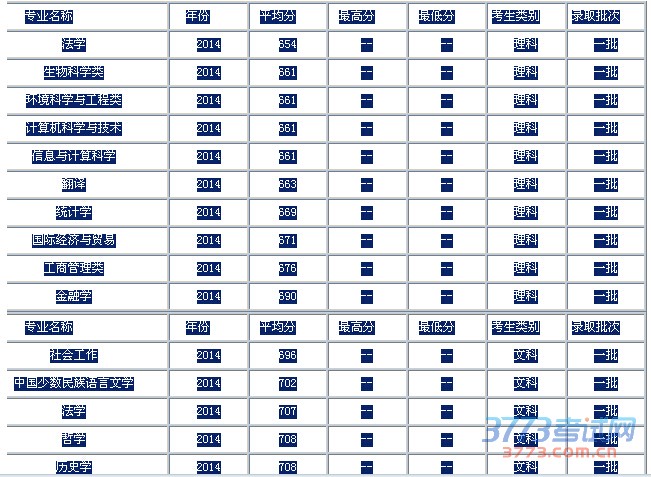 2014中央民族大学在西藏文理科录取分数