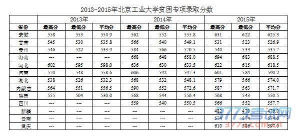 2013-2015年北京工业大学录取分数线(贫困专项)