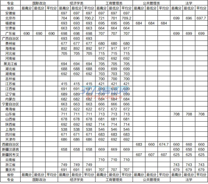 北京大学(校本部)2015年各省(自治区、直辖市)专业录取分数线