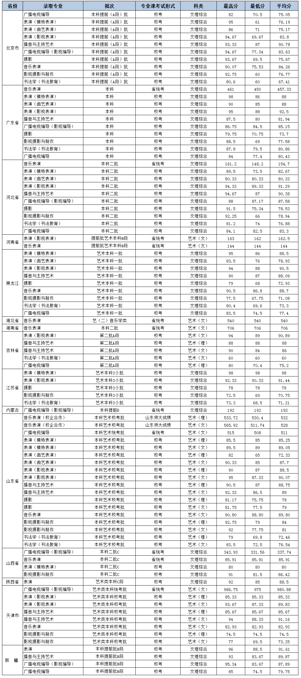 1、美术类专业我校承认并使用省统考成绩,录取原则是在文化课总分达到最低控制分数线和美术统考本科合格的基础上,按照志愿优先的原则,根据综合成绩由高分到低分对进档学生择优录取,综合成绩=(文化课总分+美术统考总分)×50%,在综合成绩相同的情况下取美术统考总分高的考生。对有特殊规定的,按照省里规定的原则录取(浙江省、湖北省、湖南省、山东省、天津市按省规定折算后投档成绩录取)。