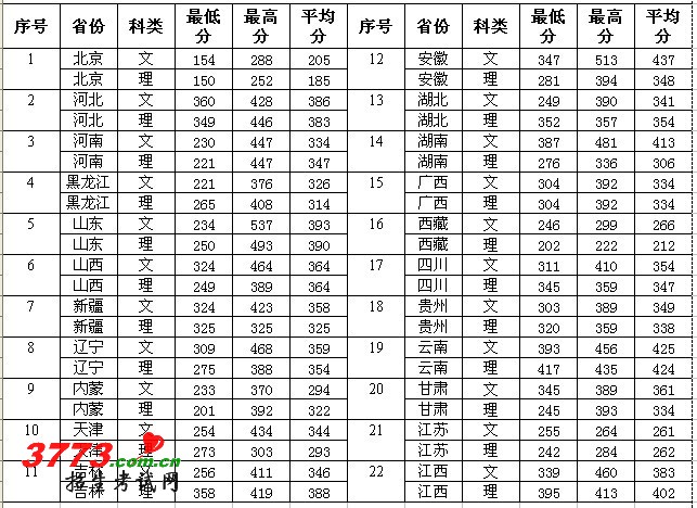 2010年各省录取分数线统计表