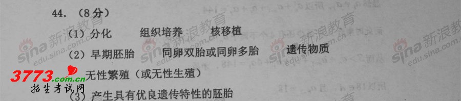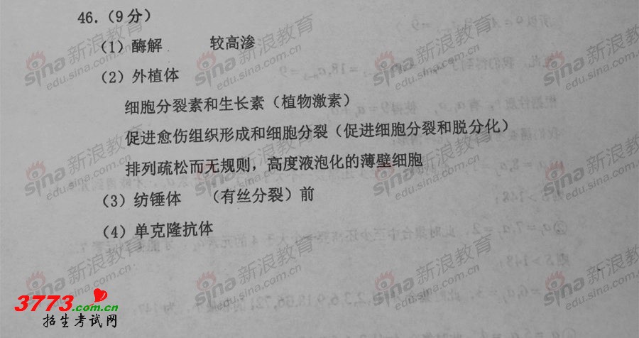 高考试卷答案