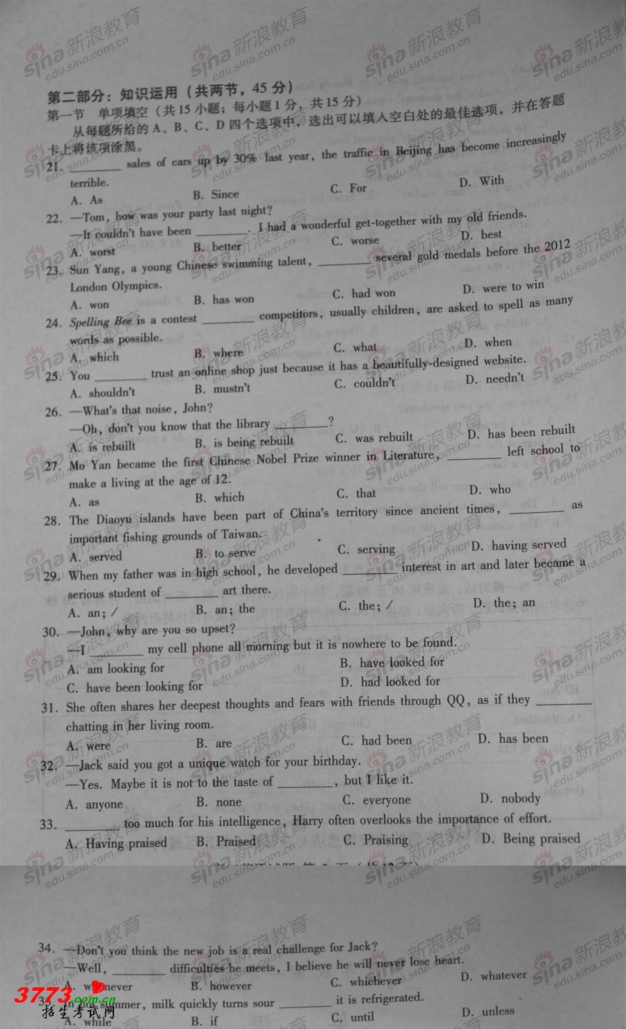北京2012年高考英语试题及答案