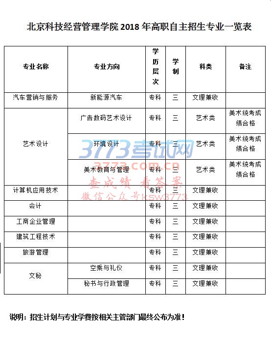 北京科技经营管理学院高职自主招生专业一览表