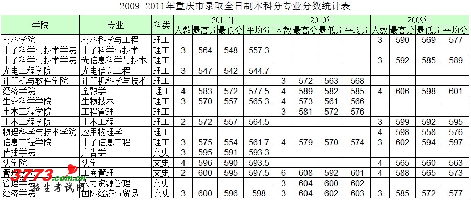 深圳大学2009年2010年2011年重庆录取分数线深圳大学2009年2010年2011年重庆录取分数线