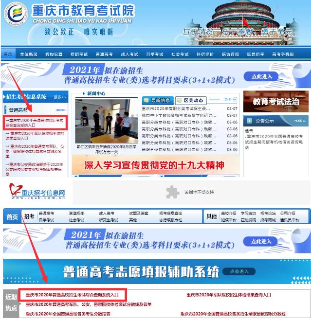 ①进入查询网站,选择“重庆市2020年普通高校招生考试综合查询系统入口”