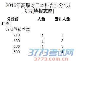 2016重庆对口高职本科1分段表(机械加工类含加分)