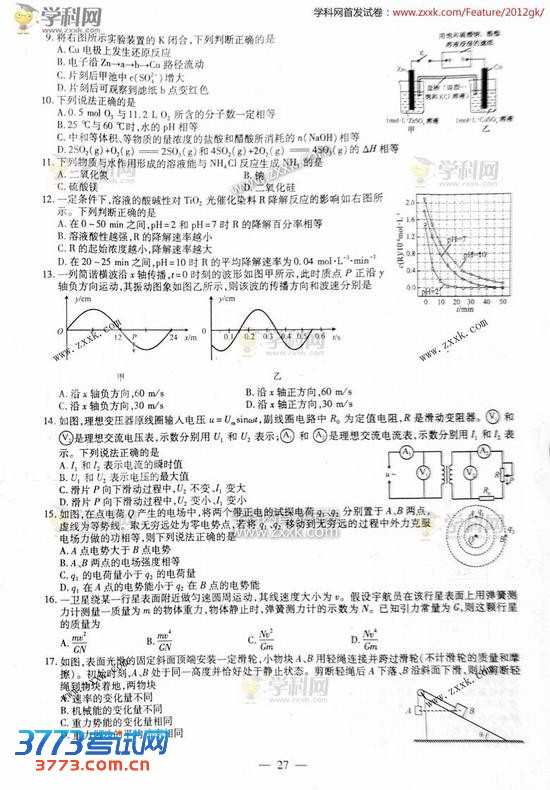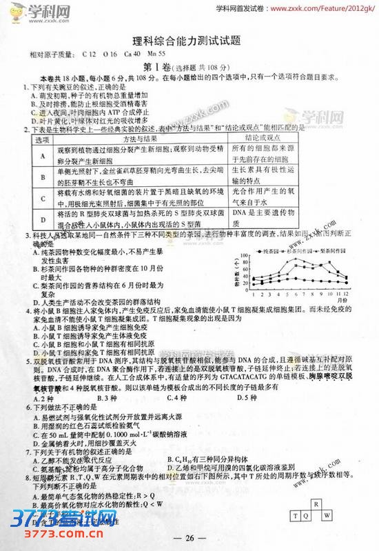 2012年高考理综试题难易程度大家也是众说纷纭,以下是高考网为广大考生准备的2012福建卷高考理综试题及答案,希望对考生的考后估分及下一届考生的备考有所帮助!