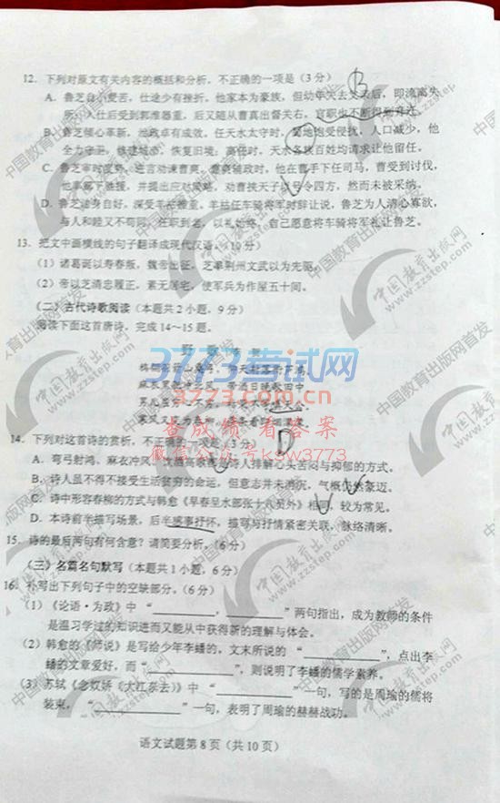 3773考试网 - 高考 - 高考试卷答案 - 福建 - 福建高考语文 - 正文