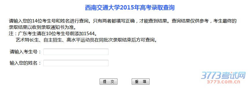 >>>西南交通大学2015年高考录取结果查询入口<<