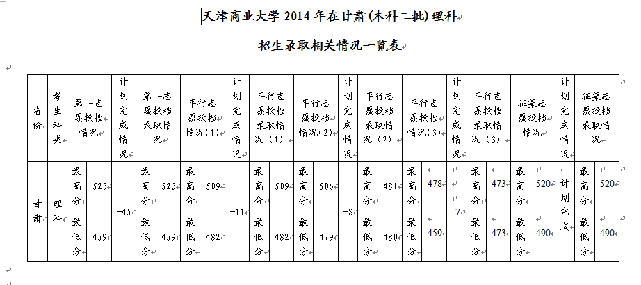 2014天津商业大学甘肃二本录取分数线情况