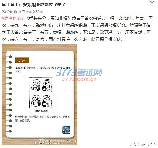 其中广东高考作文题目(全国卷):一副漫画 引发网友热议。