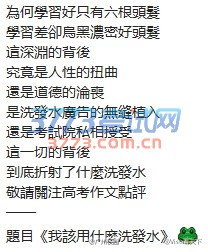网友纷纷给出自己的解题“思路”,《我该用什么洗发水》《么么哒与啪啪啪》《妈妈请再打我一次》《要想成绩好 必须头发少》……脑洞突破天际!