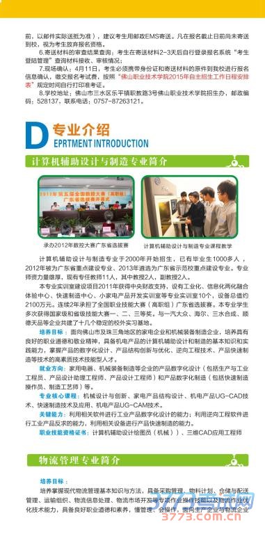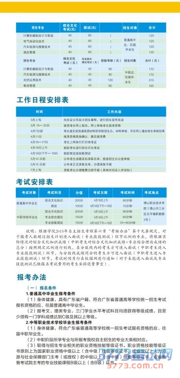 佛山职业技术学院2015年自主招生简章(