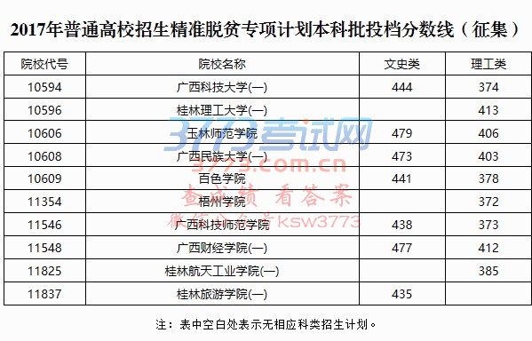 2017年普通高校招生精准脱贫专项计划本科批投档分数线(征集)