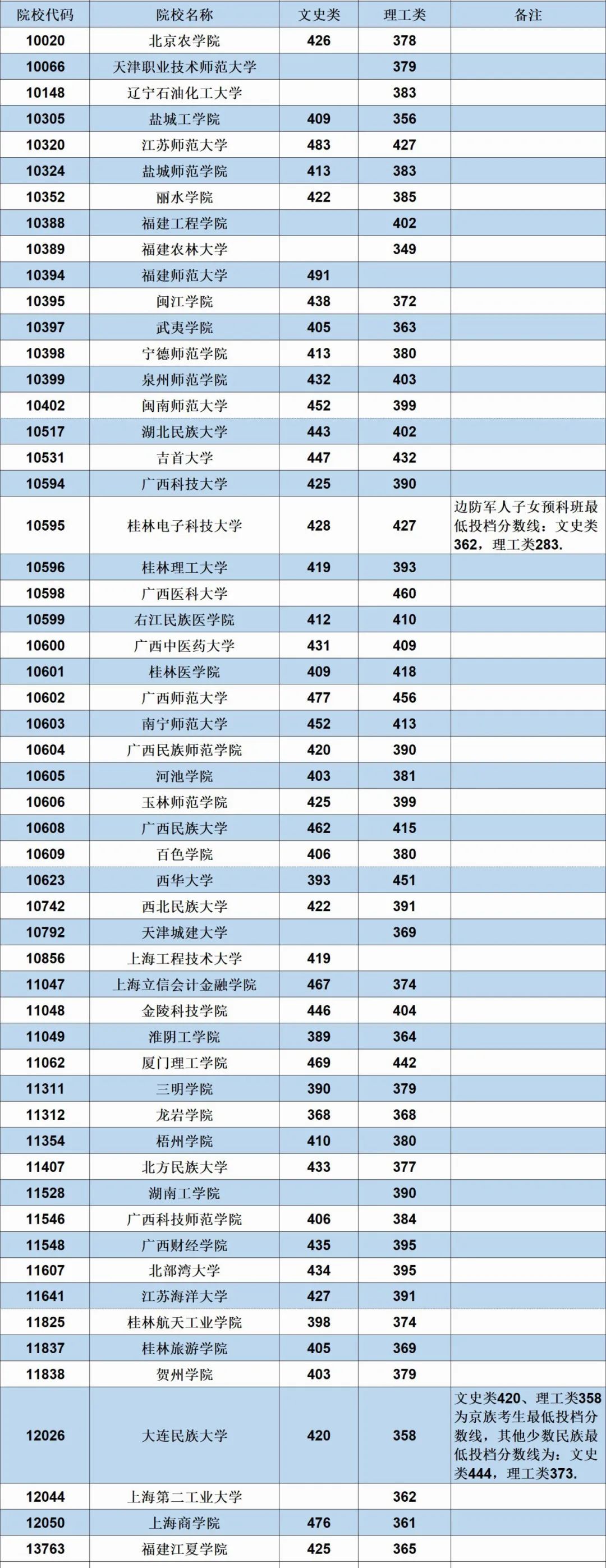 2020广西普通高校招生本科第二批预科B类最低投档分数线