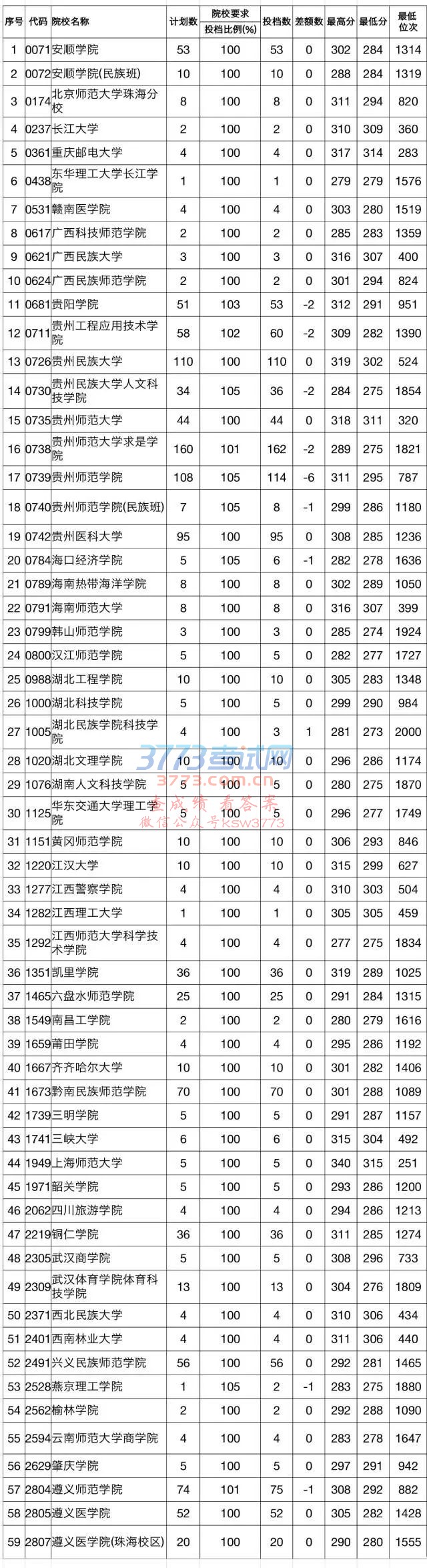 贵州省2017年高考体育(理)二本平行志愿投档情况(7月13日)