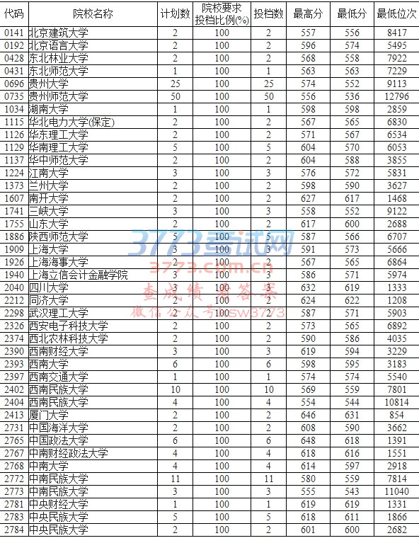 37 2773 中南民族大学 3 100 3 555 543 11040