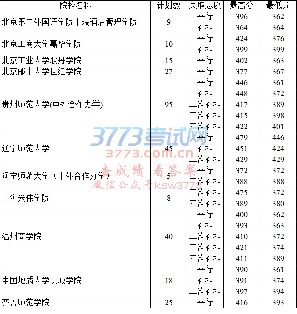1 北京第二外国语学院中瑞酒店管理学院 9 平行 396 362