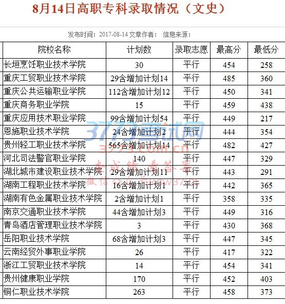 8月14日高职专科录取情况(文史)