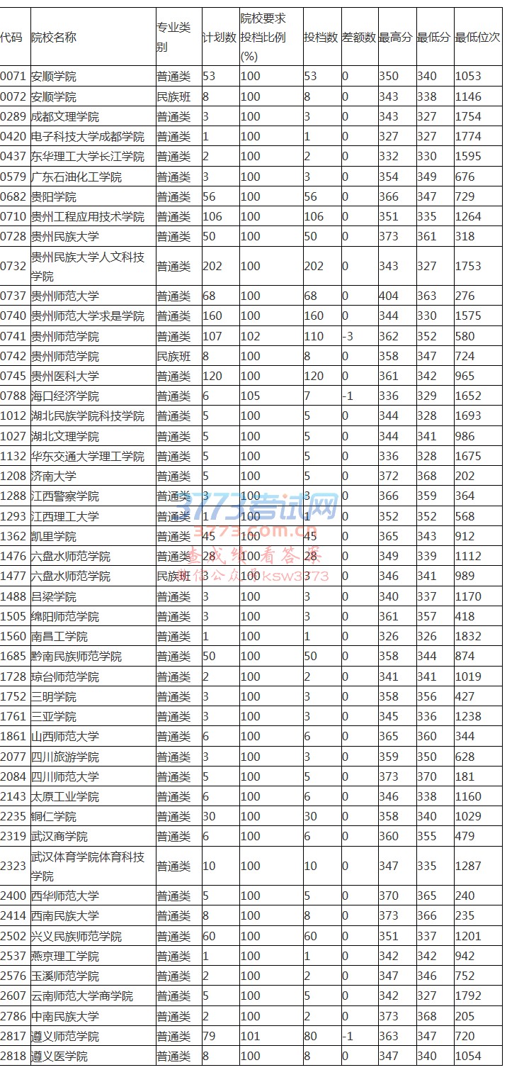 贵州省2018年高考体育(文)二本平行志愿投档情况(7月12日)