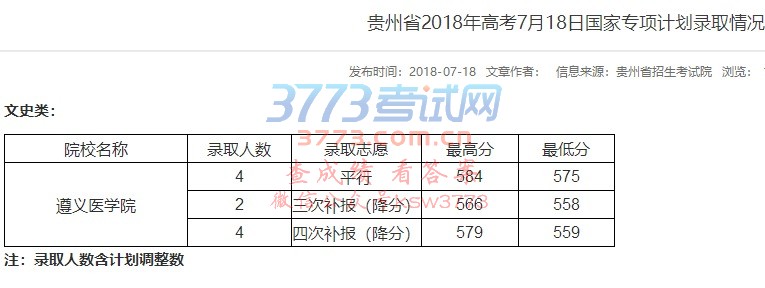 院校名称 录取人数 录取志愿 最高分 最低分遵义医学院 4 平行 584 5752 三次补报(降分) 566 5584 四次补报(降分) 579 559注:录取人数含计划调整数