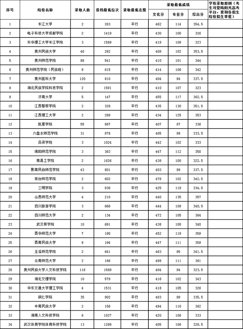 贵州省2019年高考7月14日体育第二批本科院校录取情况(理工、文史)