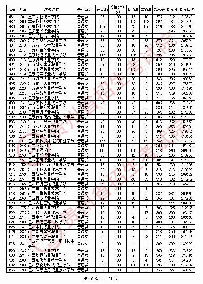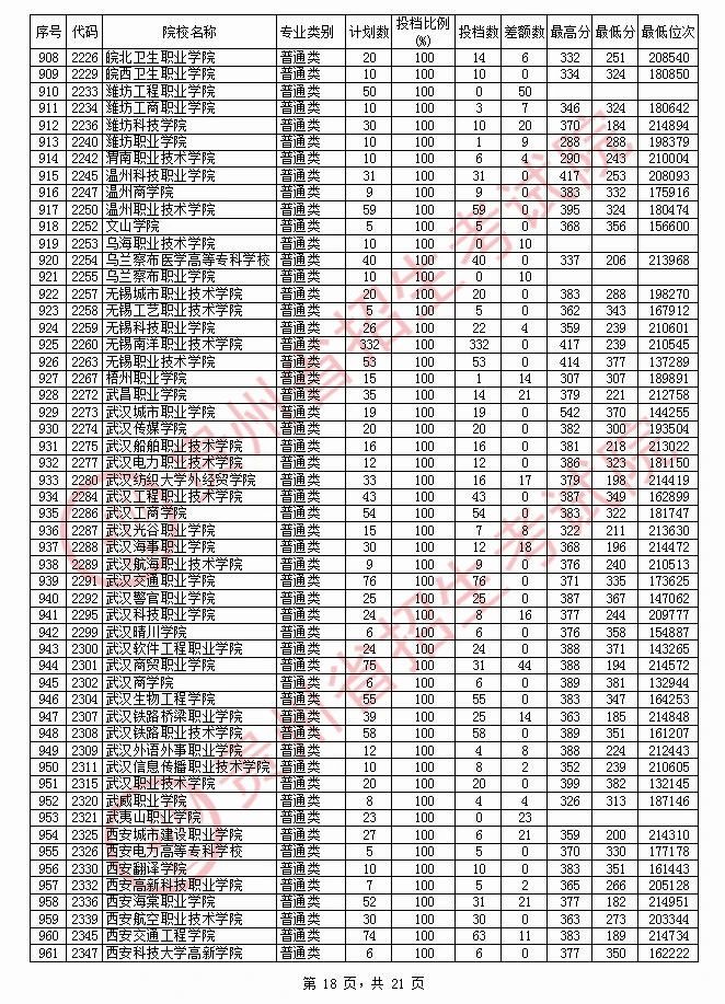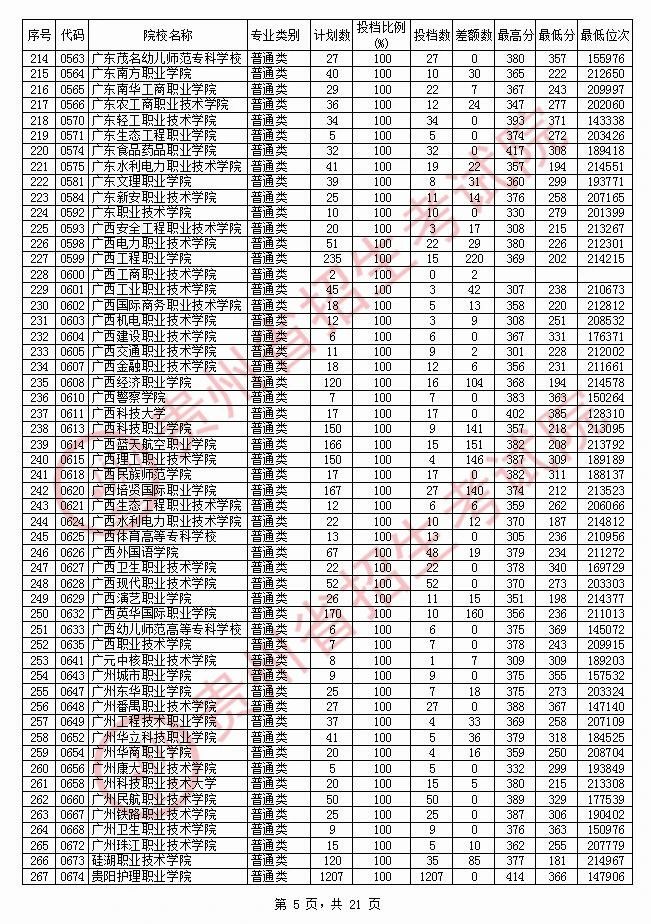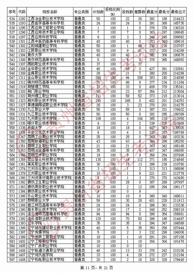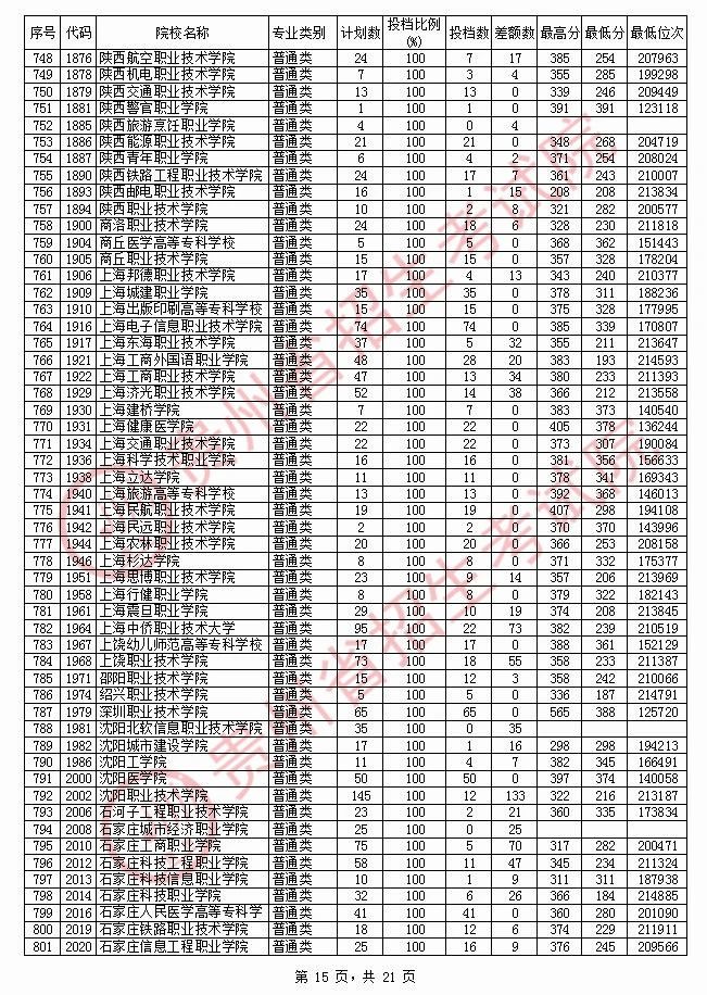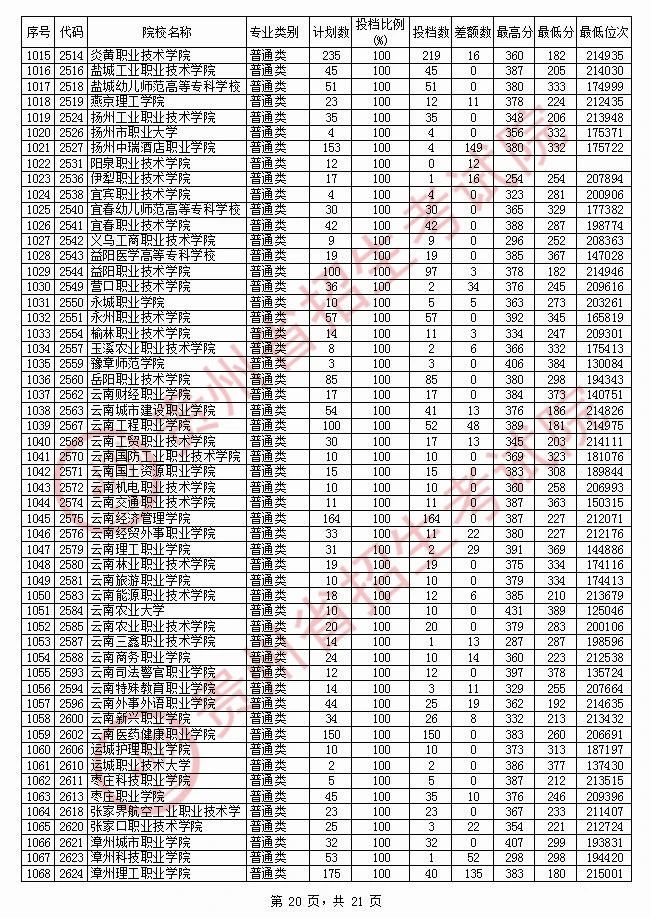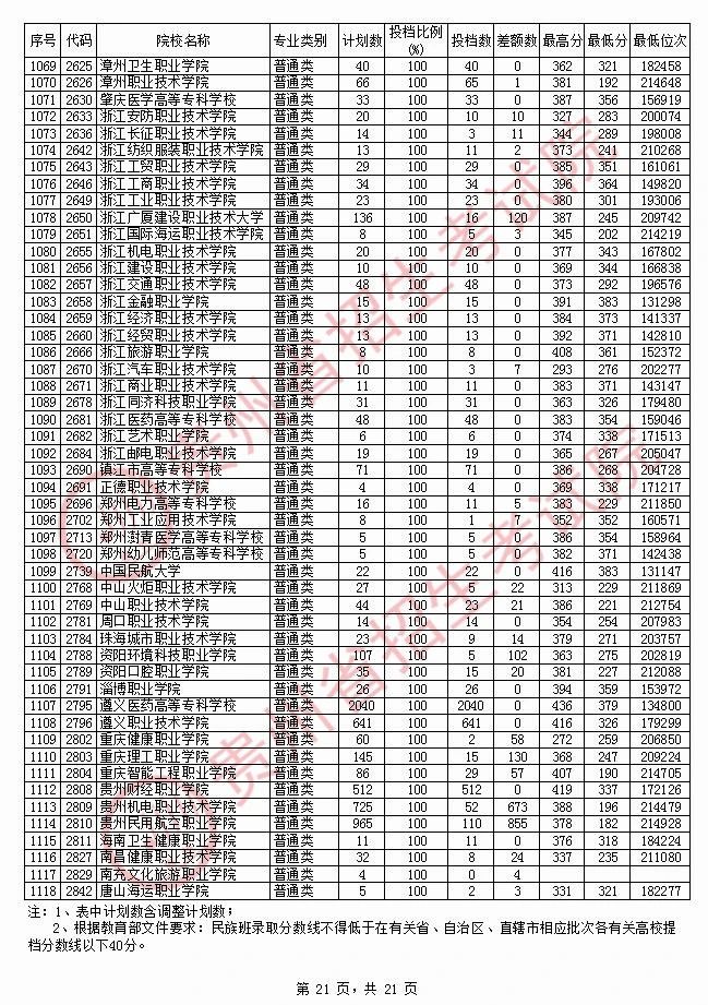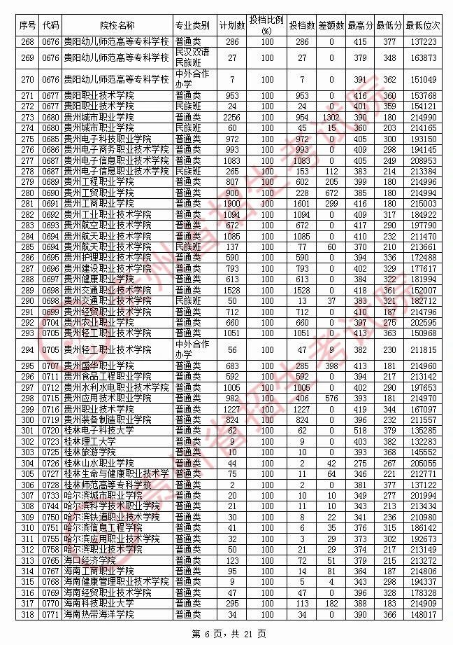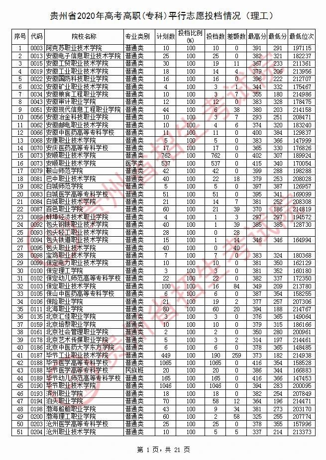 2020贵州高职专科院校投档分数线情况(理工)