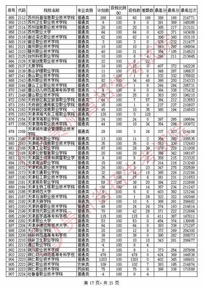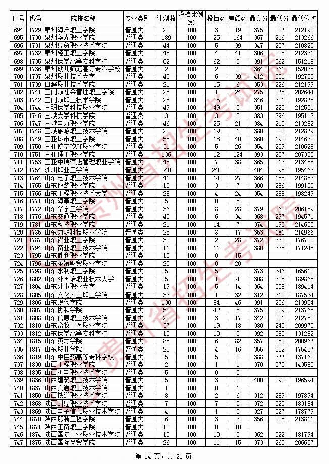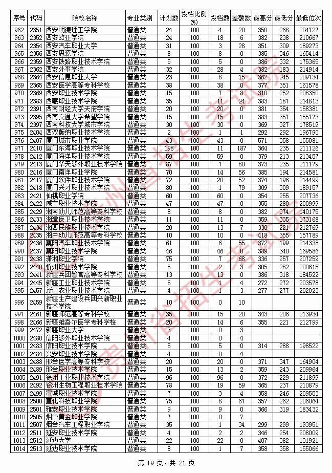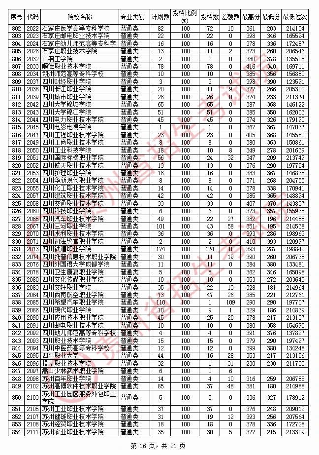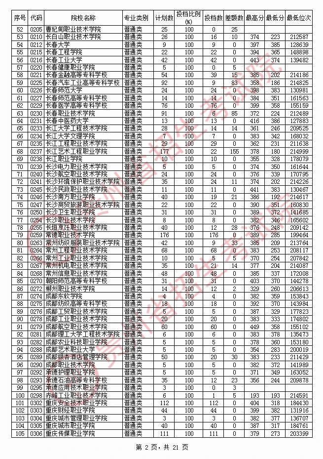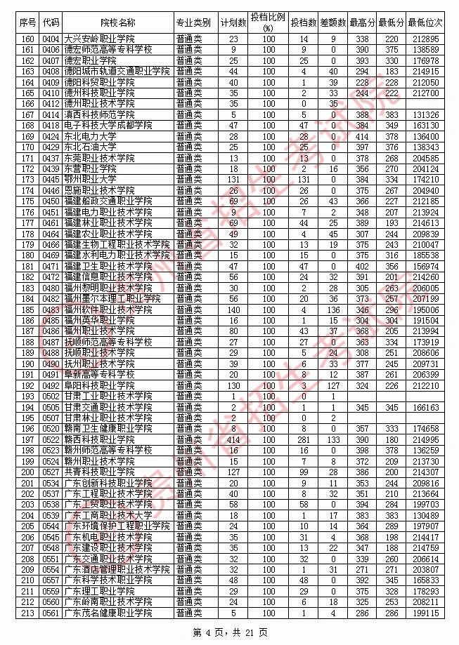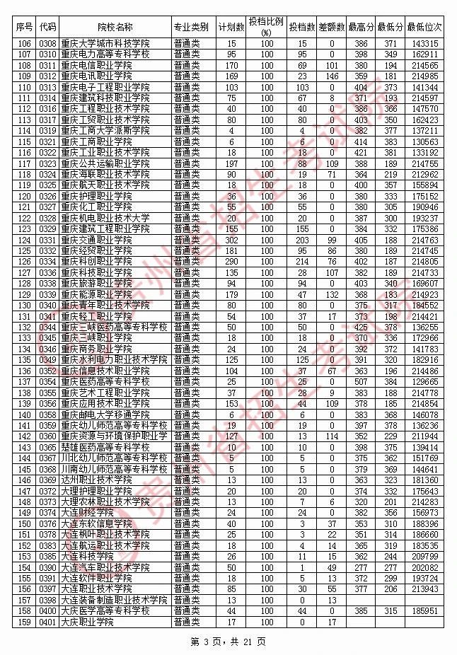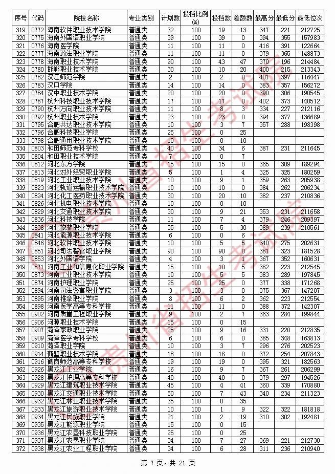 2020贵州高职专科院校投档分数线情况(理工)