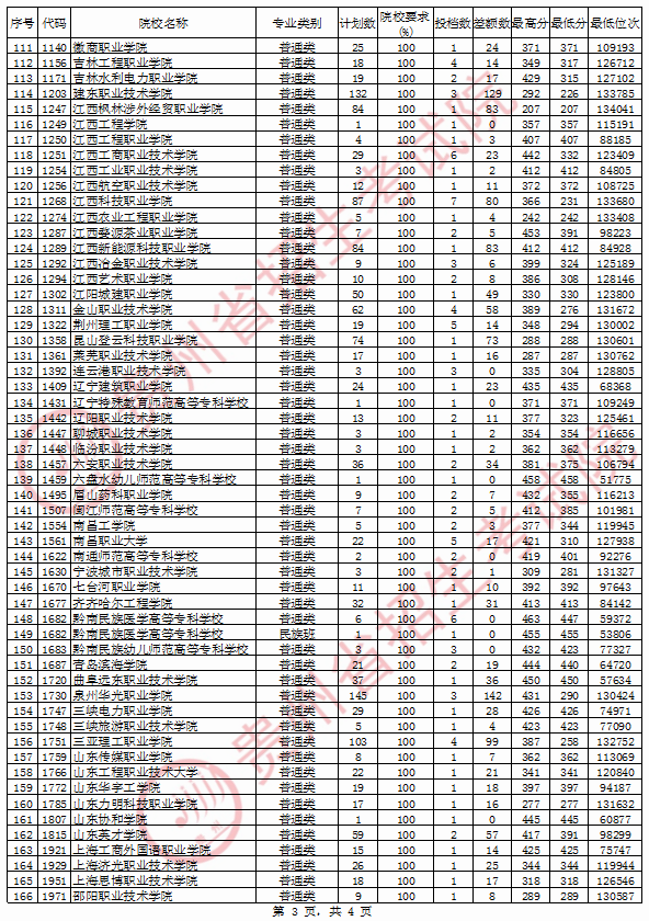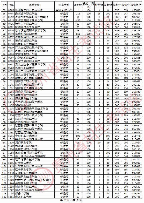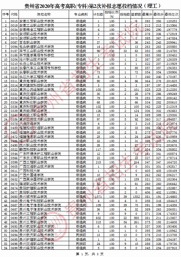 2020年贵州高考专科第2次补报志愿投档分数线情况