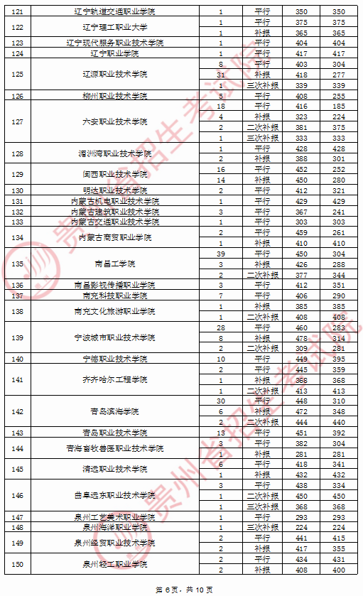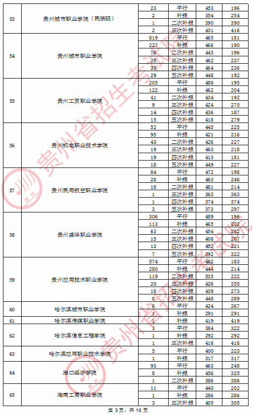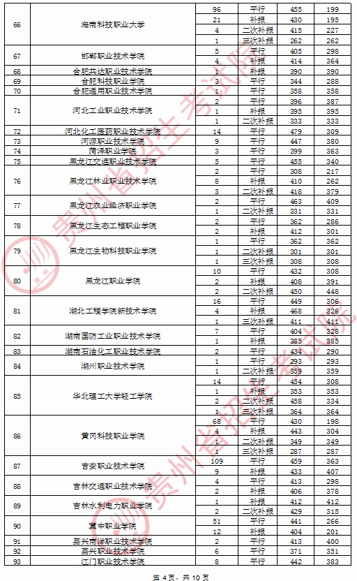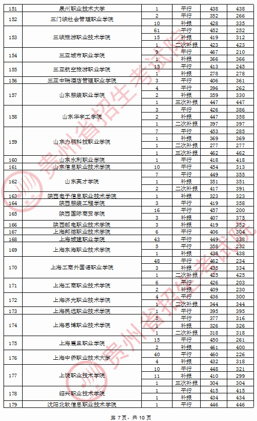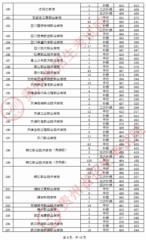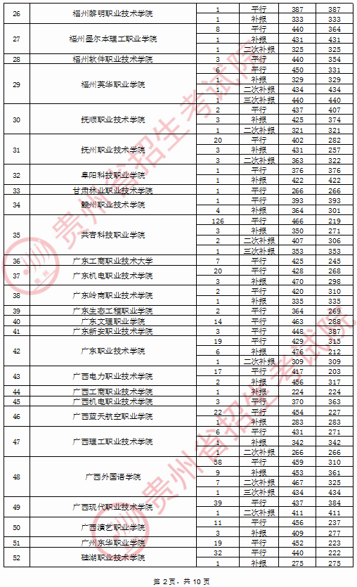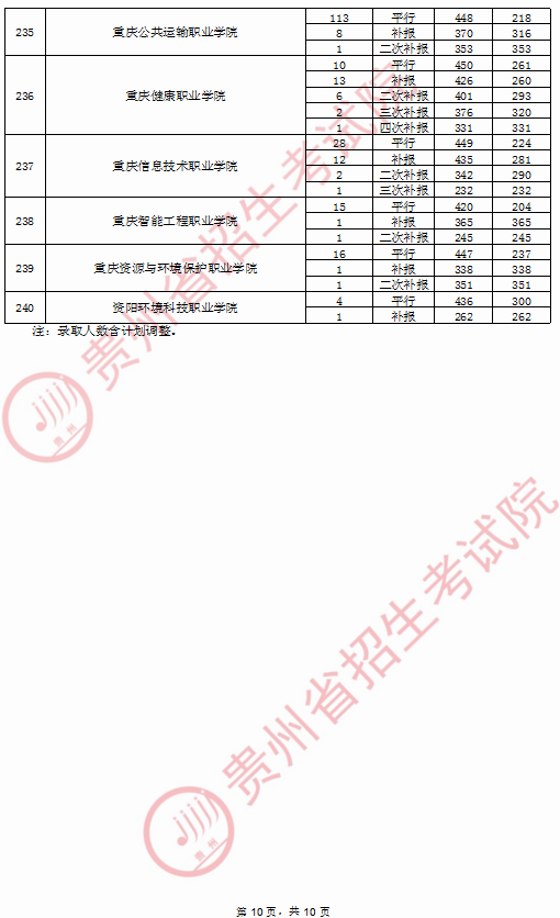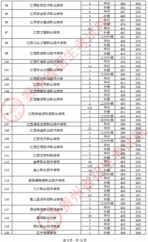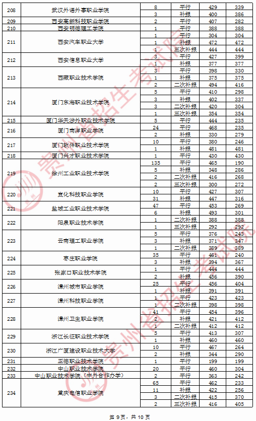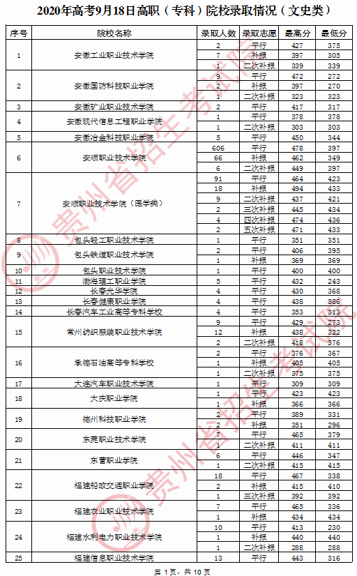 2020年9月18日贵州高考专科院校录取分数线(文史)