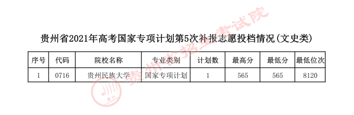 2021年7月20日高考国家专项计划第5次补报志愿投档情况
