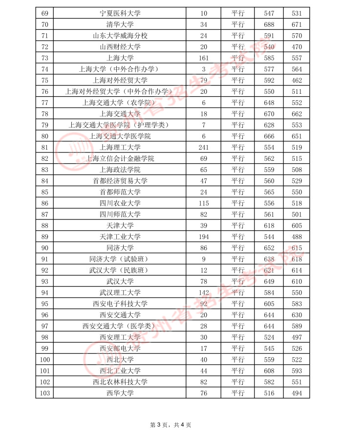 2021年7月23日贵州第一批本科院校录取分数线情况
