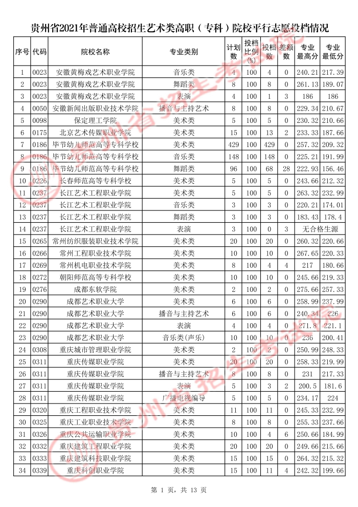 2021年8月4日普通高校招生艺术类高职(专科)院校平行志愿投档情况.pdf