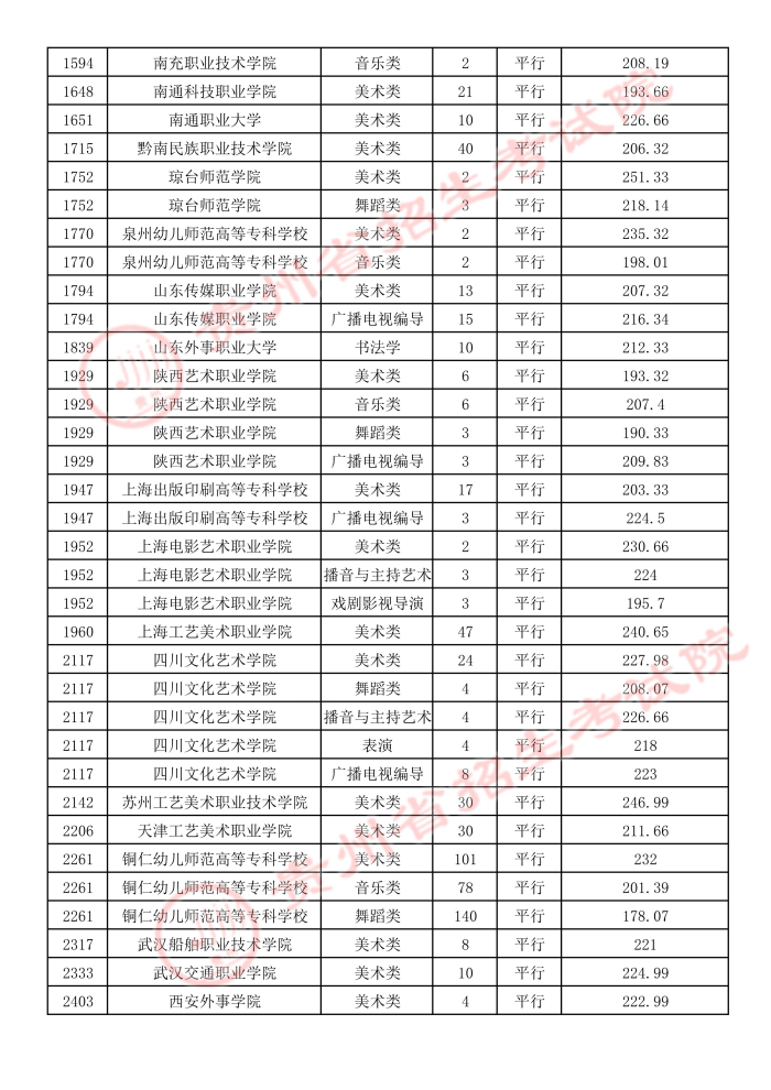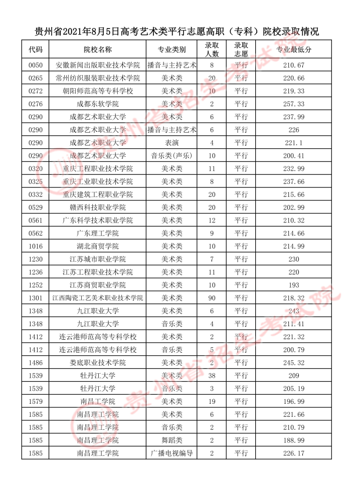2021年8月5日贵州艺术类专科院校录取分数线情况