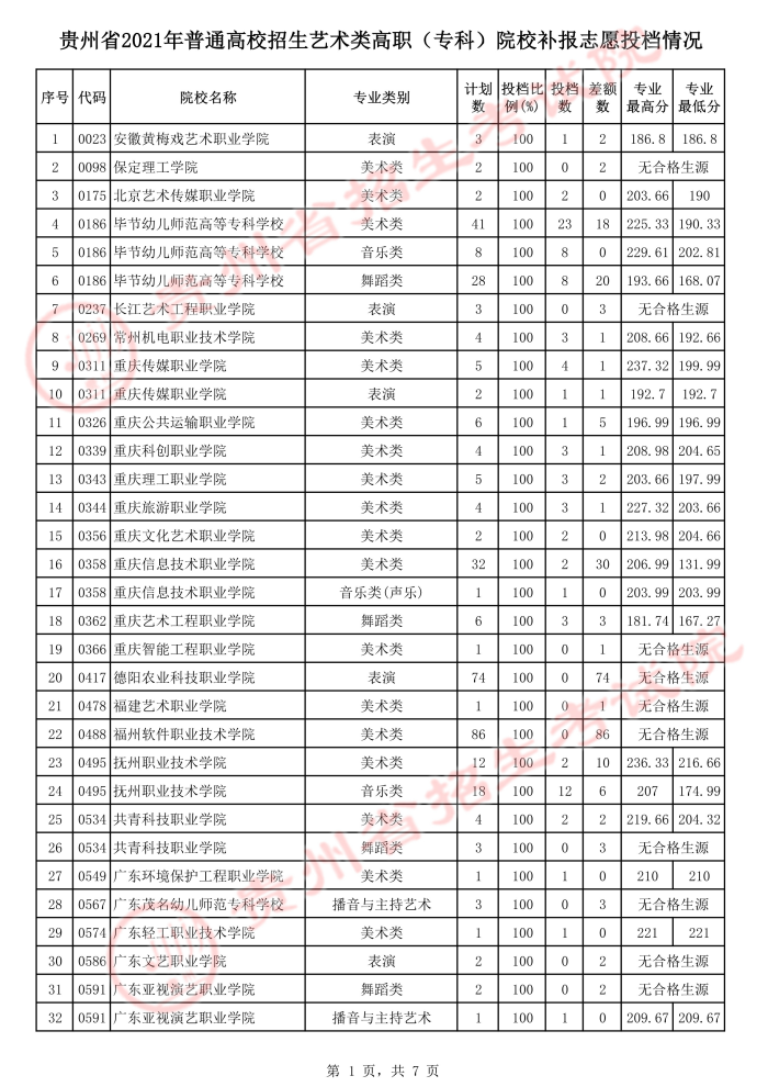 2021年8月6日普通高校招生艺术类高职(专科)院校补报志愿投档情况.pdf