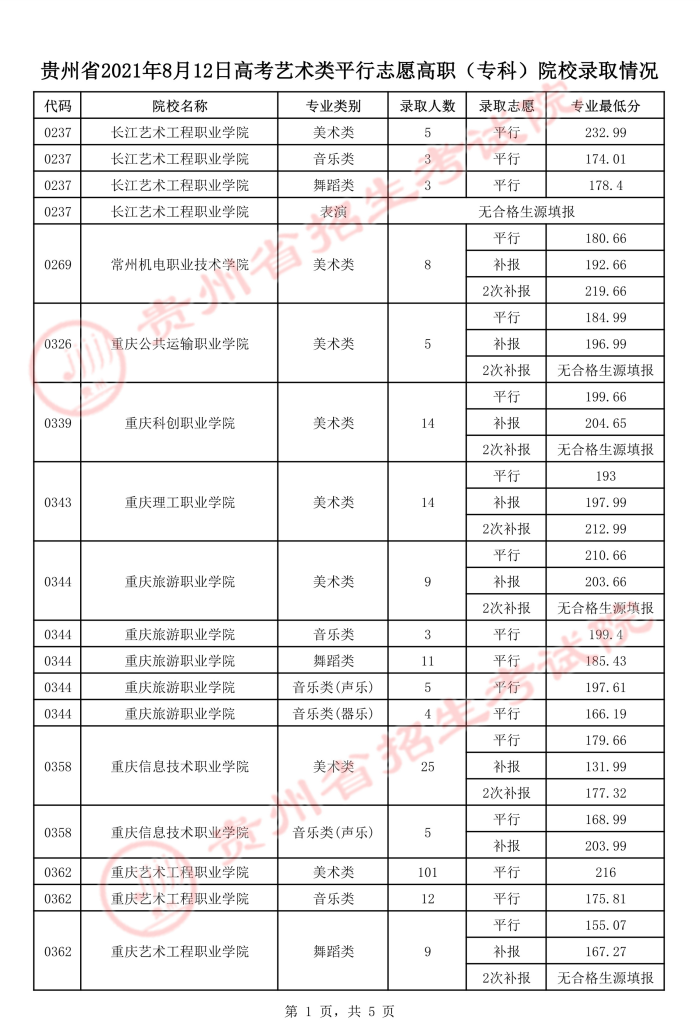 2021年8月12高考艺术类平行志愿高职(专科)院校录取情况.pdf