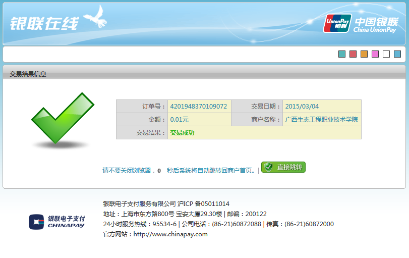 5、缴费成功后自动跳转回报名系统,考生状态将置为“网上缴费”。