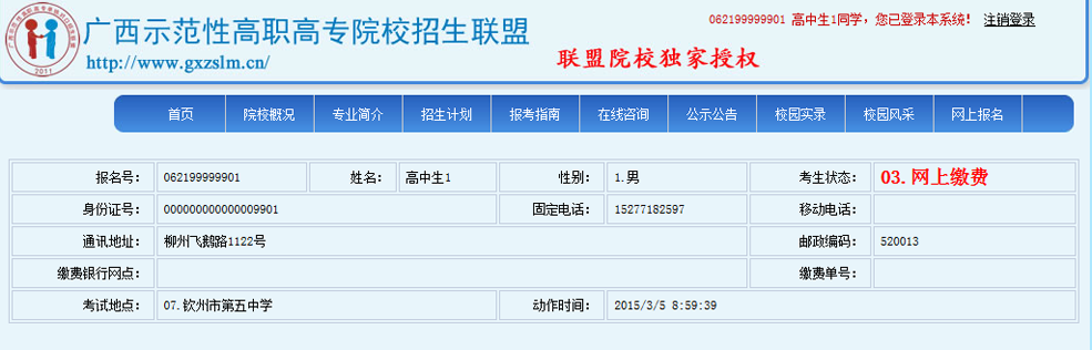 2015广西示范性高职单独/对口招生联合测试报名须知