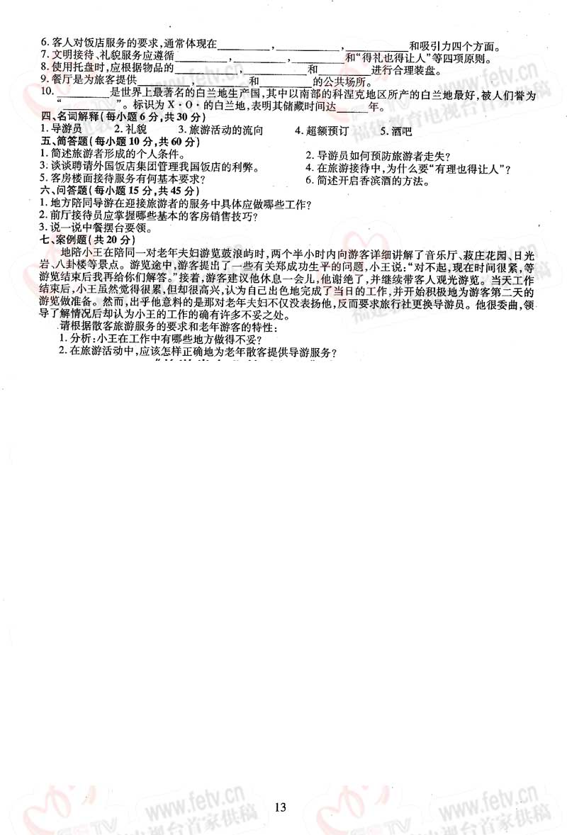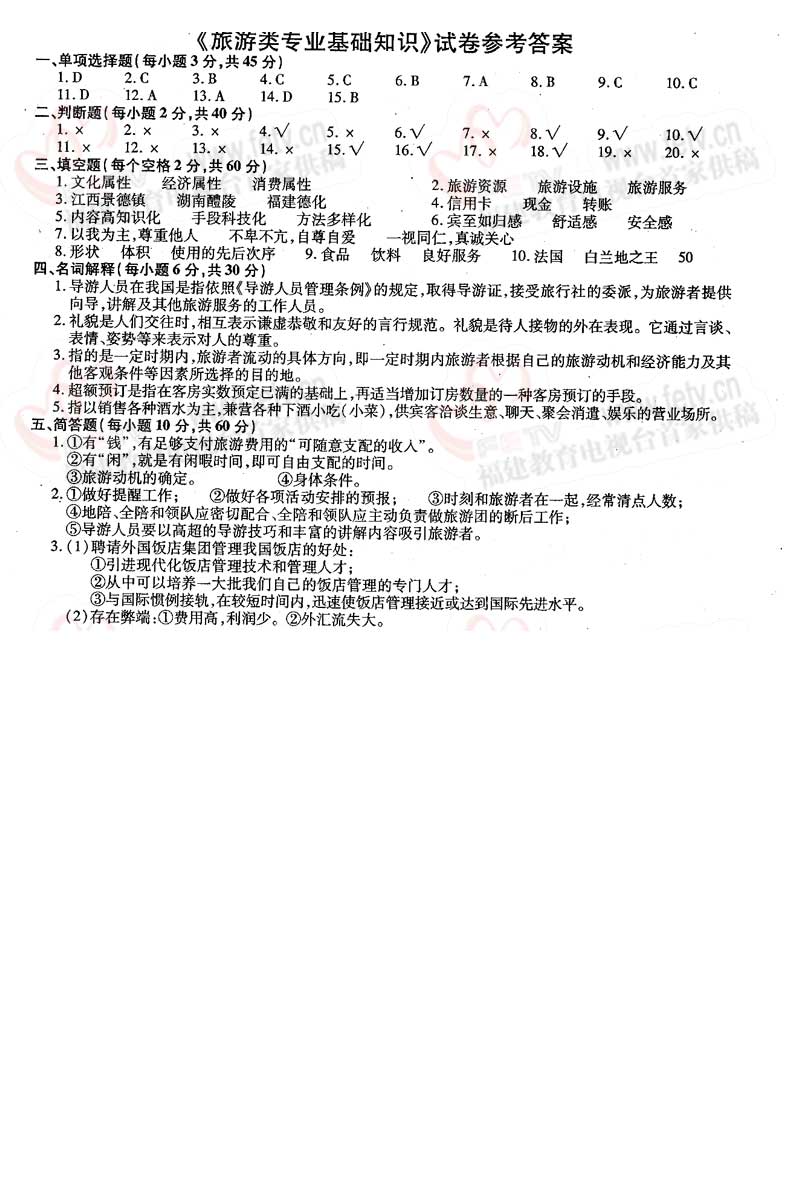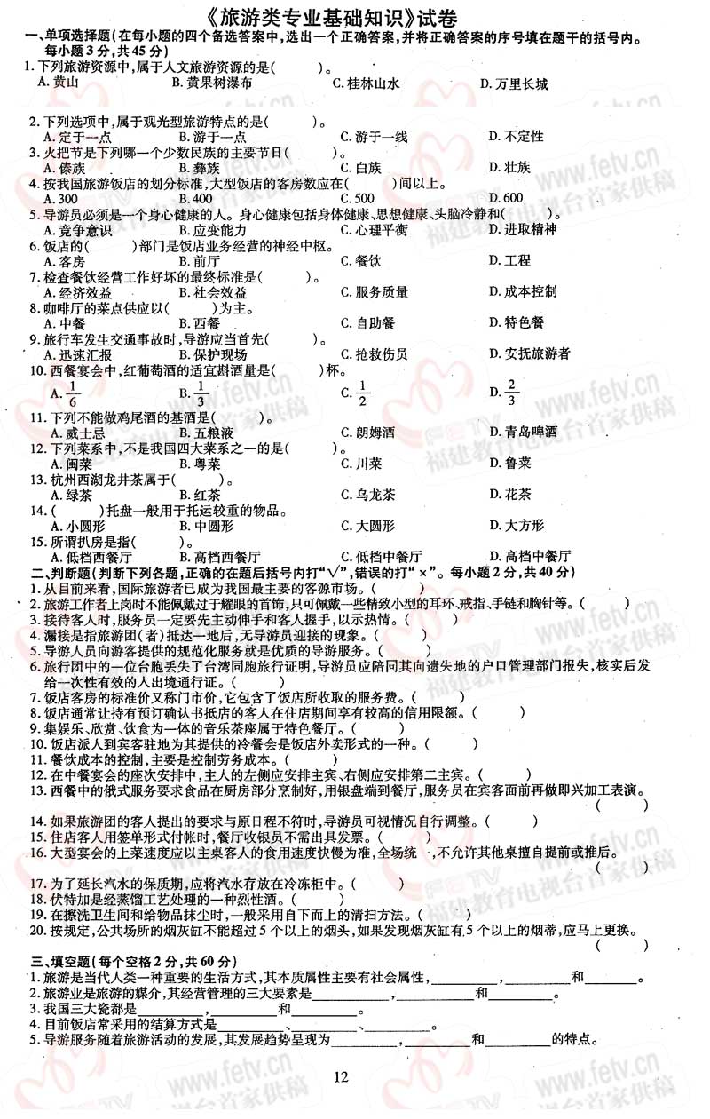 福建省2005年高职单招试题及答案-旅游类专业基础知识