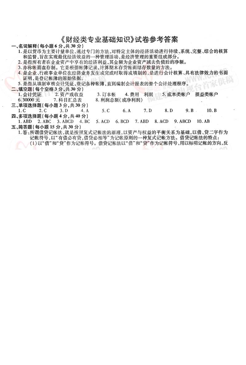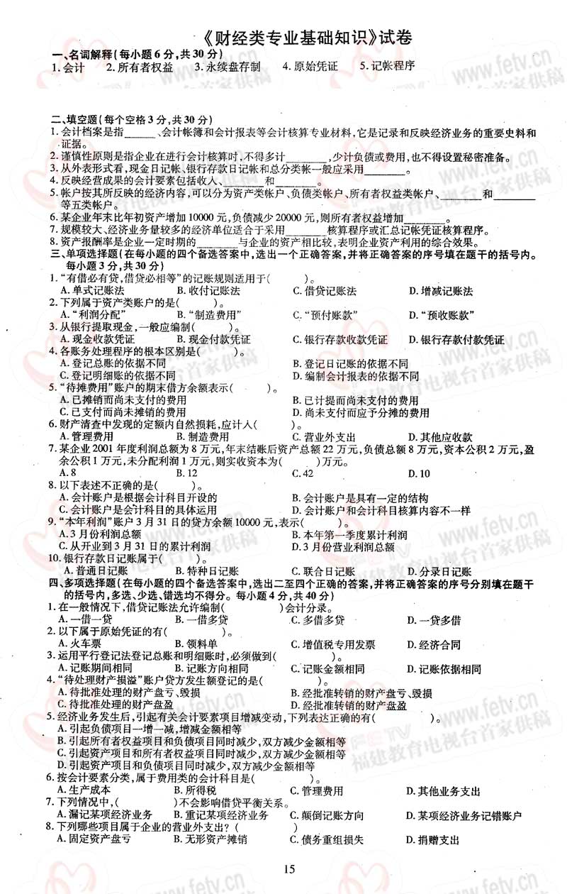 福建省2005年高职单招试题及答案-财经类专业基础知识