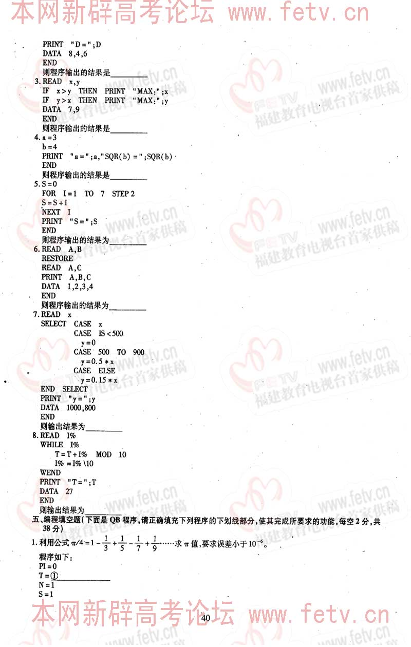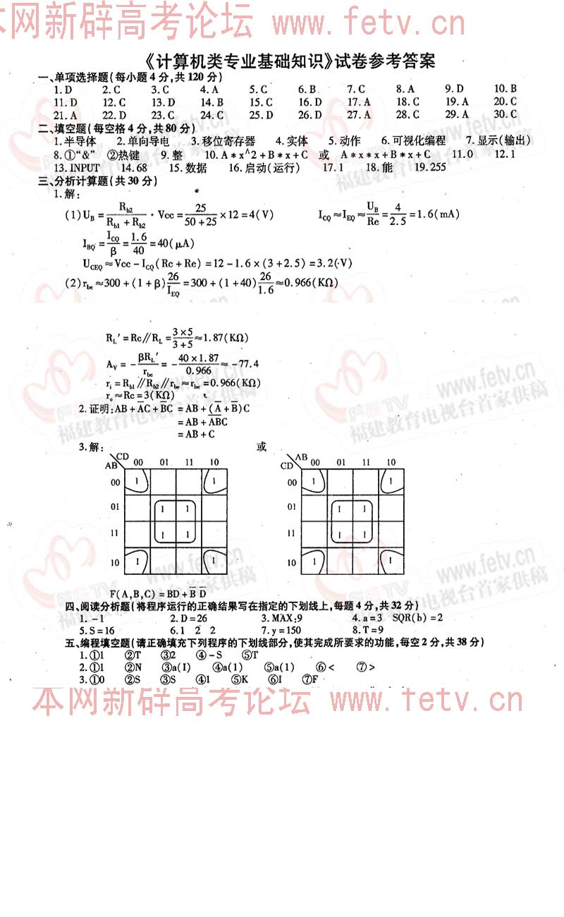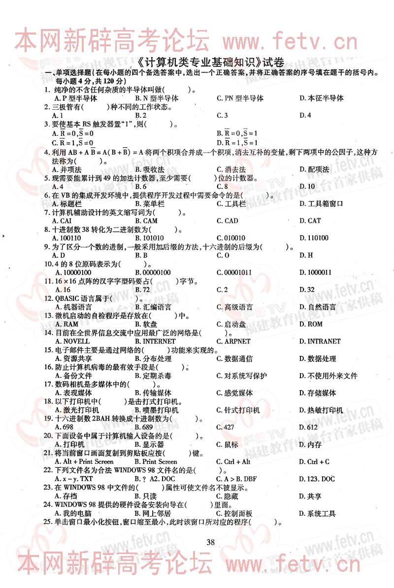 福建省2005年高职单招试题及答案-计算机类专业基础知识