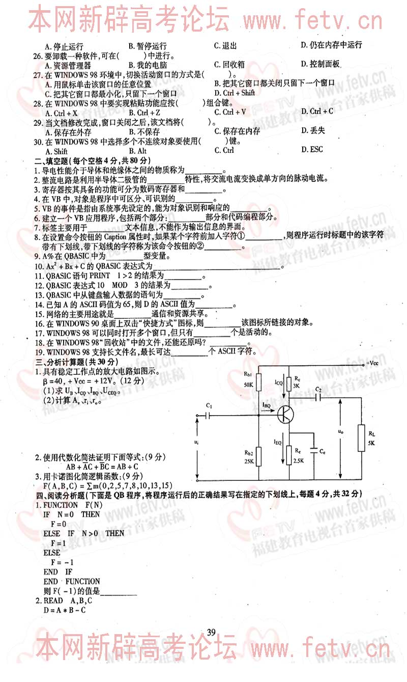 福建省2005年高职单招试题及答案-电子电气类专业基础知识