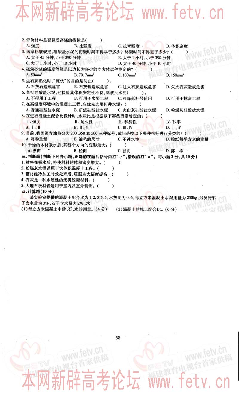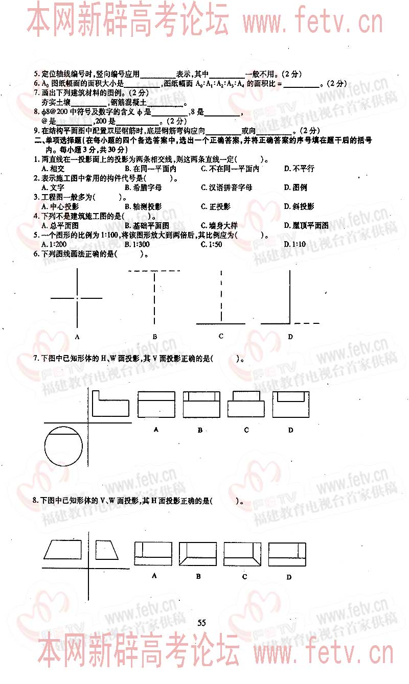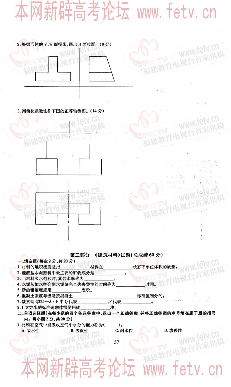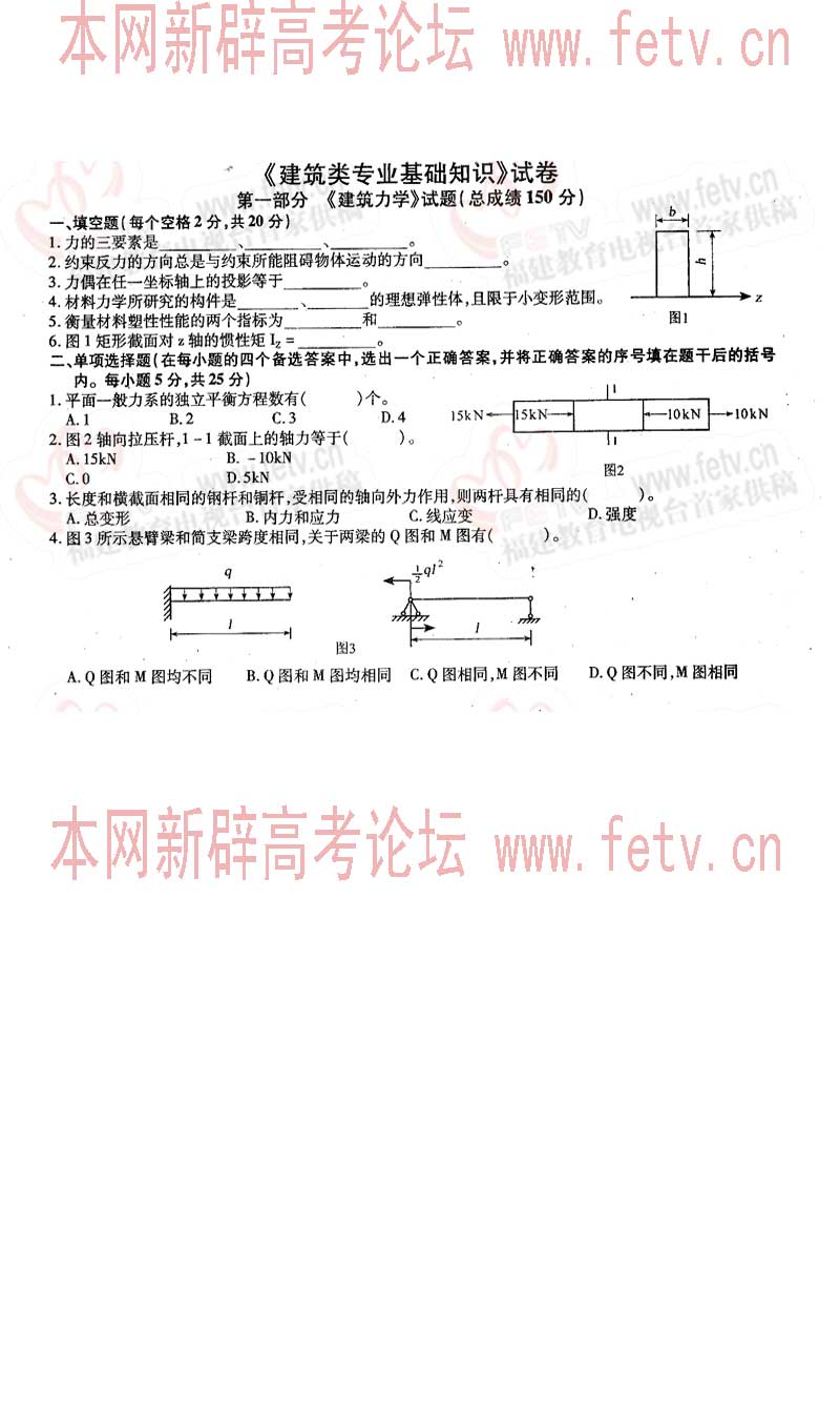 福建省2005年高职单招试题及答案-建筑类专业基础知识