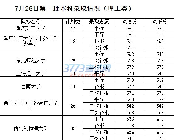序号 院校名称 计划数 录取志愿 最高分 最低分