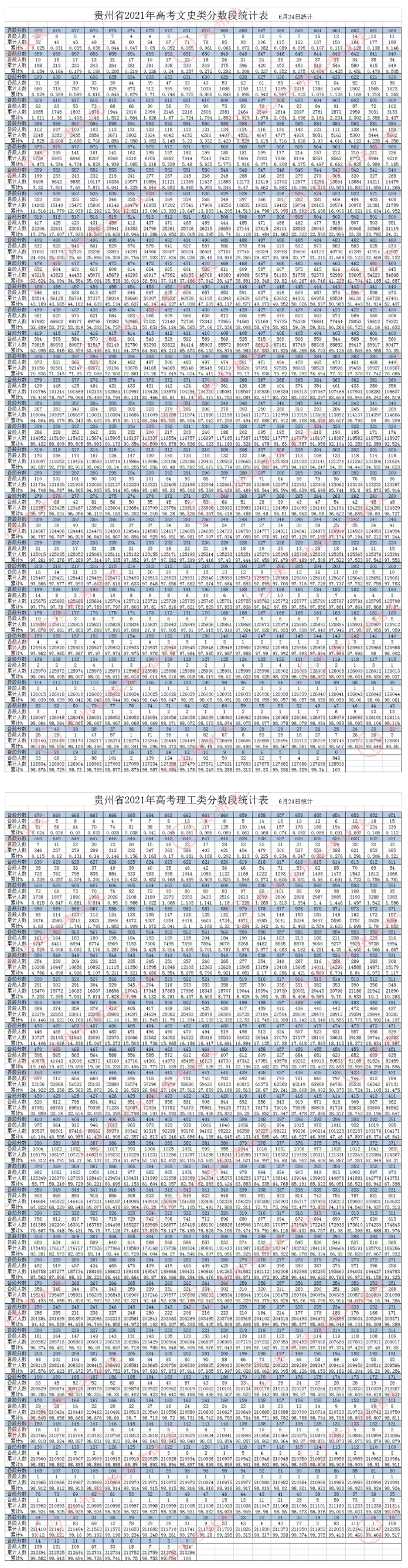 2021贵州高考文理科分数段一分一段表公布