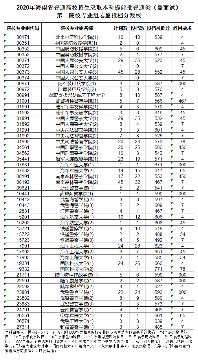 2020年海南省普通高校招生录取本科提前批普通类(需面试)第一院校专业组志愿投档分数线